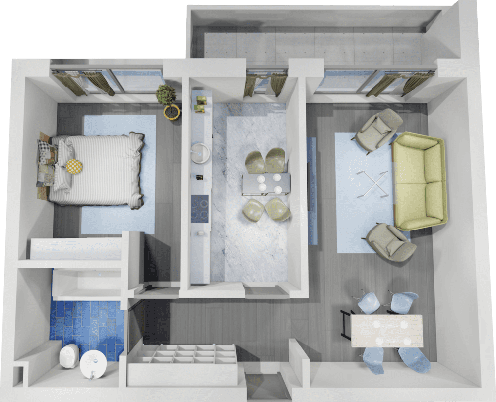 • Balcon delimitat cu balustrada din sticla securizata